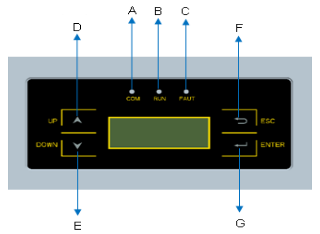 系統(tǒng)采用的逆變器擁有精美的顯示屏,顯示機器所有相關(guān)的運行信息和設(shè)置,三個LED燈分別指示機器的運行狀況,通信狀態(tài)和是否有錯誤信息,用戶可以一目了然的了解機器的實時運行狀況。