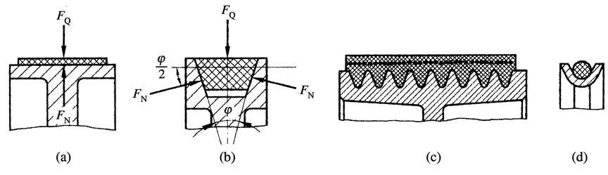 (a) 平帶; (b) V帶; (c) 多楔帶; (d) 圓形帶