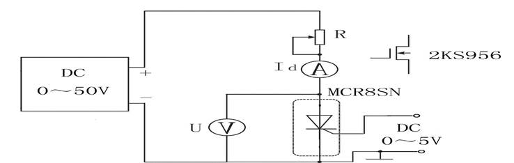 首先將絕緣柵型場(chǎng)效應(yīng)管(2KS956)接入主電路,主電路直流0~50V電源用屏上直流電樞電源,控制回路電源用0~30V直流可調(diào)穩(wěn)壓電源,把30V可調(diào)穩(wěn)壓電源電位器沿逆時(shí)針旋到底, 電位器選元器件測(cè)試箱上的1K\2W的電位器;電流表選用控制屏上20mA~2000mA的直流檔,直流電壓表選用100V的電壓檔