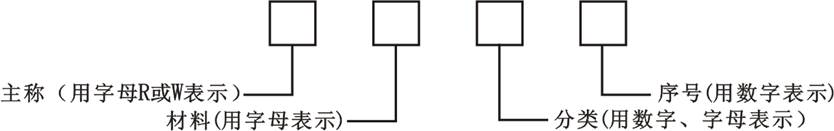 | 用字母表示主稱(chēng) | 用字母表示材料 | 用數(shù)字或字母表示分類(lèi) | ||||