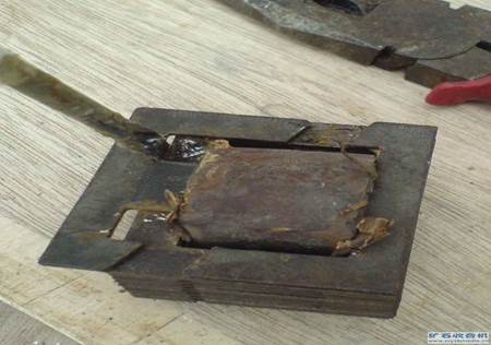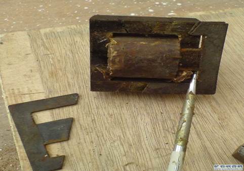6、把對(duì)側(cè)的那兩片也敲出來,這下鐵心就沒有那么緊了,重復(fù)上面的步驟,再敲出一兩片來,就不會(huì)很困難了。如圖1-7。