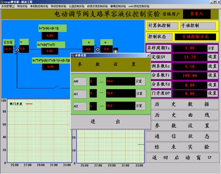 圖3.10 “電動閥支路單容液位控制實驗”界面