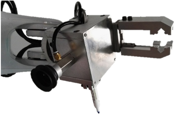 使用多功能實(shí)訓(xùn)夾具的優(yōu)點(diǎn)是只需要通過變換機(jī)器人手爪姿態(tài)即可實(shí)現(xiàn)對模擬應(yīng)用環(huán)境的模擬操作與編程,外形尺寸:120*120*180mm,重量2KG;具備吸緊工件實(shí)現(xiàn)碼垛功能;實(shí)現(xiàn)夾持物料模擬上下料的功能,同時具有軌跡畫筆。