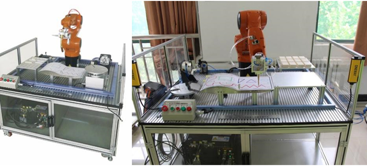 模塊整體臺架材料為優(yōu)質(zhì)鋁型材,一體畫板由不銹鋼板制成,表面覆蓋PVC膜;具有TCP標(biāo)定工具,可實(shí)現(xiàn)機(jī)器人工具TCP標(biāo)定練習(xí);實(shí)現(xiàn)基本軌跡編程練習(xí),提供三角形、矩形、圓形及多線段圖形,訓(xùn)練不同的編程指令,實(shí)現(xiàn)在平面及空間復(fù)雜教學(xué)軌跡。
