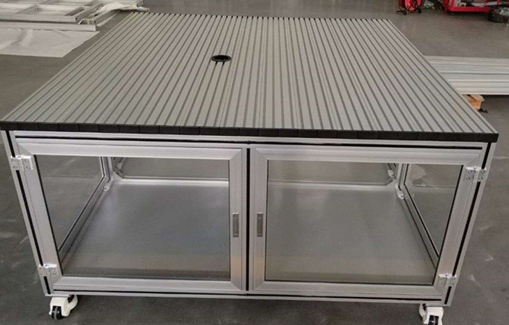 a)框架為高強(qiáng)度鋁型材結(jié)構(gòu),臺架四周采用優(yōu)質(zhì)鋼板封閉,表面噴涂處理。