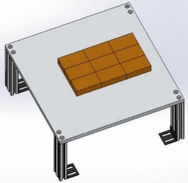 本單元由鋁板和鋁型材組合制成,尺寸為300*200*150mm;碼垛料塊為尼龍材質(zhì)外形尺寸為80*40*20,可根據(jù)實(shí)驗(yàn)要求碼垛多種形式。