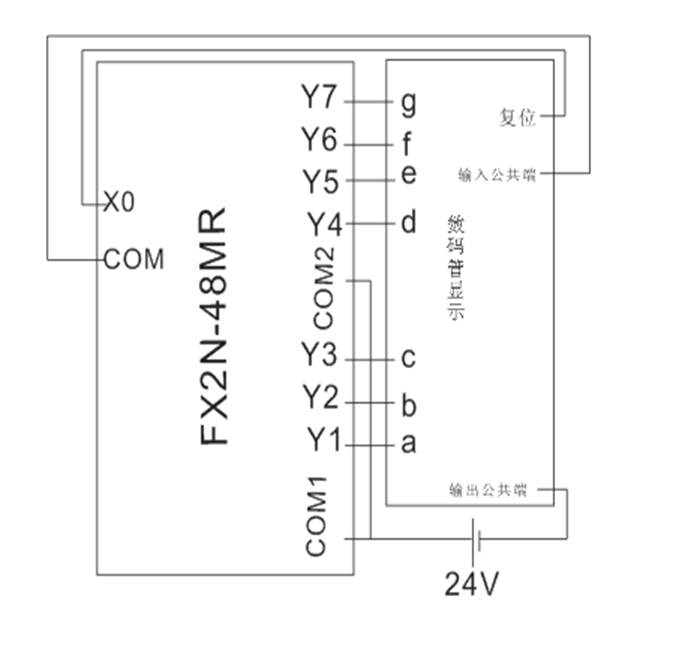X0:停止按鈕(注:面板上的復位鍵)  Y1~Y7:a~g