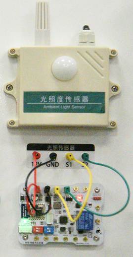 圖2-9 光照度傳感器實(shí)物圖 圖2-10 光照度傳感器實(shí)物接線(xiàn)圖
