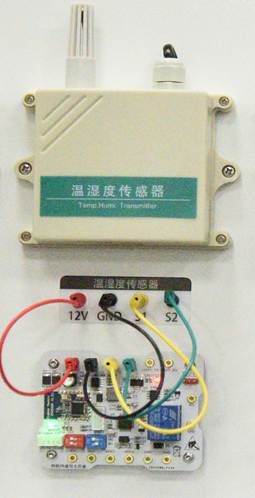 圖2-12  溫濕度傳感器實(shí)物圖               圖2-13  溫濕度傳感器實(shí)物接線圖