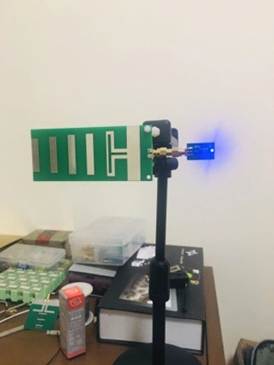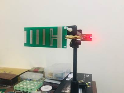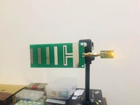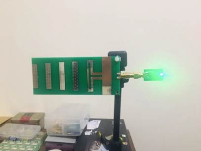 圖4垂直極化天線發(fā)射接收為綠色和紅色LED燈