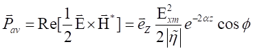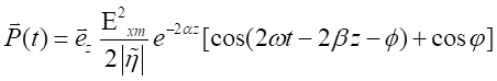 有耗媒質(zhì)中,坡印延矢量中有一部隨時間以2倍于電磁波頻率的頻率來回振蕩的成份。坡印廷矢量的時間平均值為: