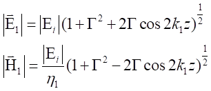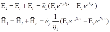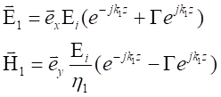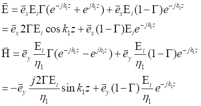 第一種媒質(zhì)中的合成波應(yīng)是入射波和反射波的迭加,所以其中總的電場強(qiáng)度和磁場強(qiáng)度為: