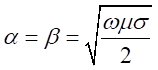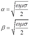 在良導(dǎo)體中,傳導(dǎo)電流占主導(dǎo)地位,損耗角正切, 平面電磁波的衰減常數(shù)為
