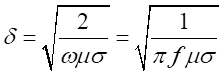 對良導(dǎo)體,即s/we>>1,穿透深度頻率愈高(滿足),s愈大,穿透深度d就愈小,例如電磁波透入銅m=m0, e=e0, s=5.810´7  1/WM時,當(dāng)頻率f=106Hz時d為6.6´10-5m,而當(dāng)f=3´1010Hz時d為3.8´10-7m。