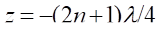 磁場強(qiáng)度的振幅最大,這些點是電場的波節(jié)點或磁場的波腹點,在                 處節(jié)電場強(qiáng)度的振幅最大,磁場強(qiáng)度的振幅最小,這些點是電場的波腹點或磁場的波點。