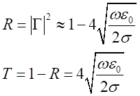 電磁波進(jìn)入導(dǎo)體的距離為幾個穿透深度時,振幅即接近于零,故良導(dǎo)體中的電磁場以及傳導(dǎo)電流于實際上只存在于導(dǎo)體表面處極薄的一層之中。這種電磁場及電流集中于導(dǎo)體表面附近的現(xiàn)象,稱為趨膚效應(yīng)。由于d很小,故在頻率很高時,對一切具有實際意義的厚度的導(dǎo)體,電磁波是不能透過的。良導(dǎo)體的得透射系數(shù)為
