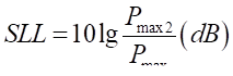 (5) 副瓣電平(Side Lobe Lever, SLL)。指副瓣最大值與主瓣最大值之比,一般也以分貝表示,其中:分別為最大副瓣核主瓣的功率密度最大值。