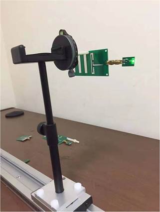 11.將收發(fā)天線設置為水平極化狀態(tài),將制作好的天線安裝在云臺支臂上,然后用云臺支臂固定旋鈕固定。