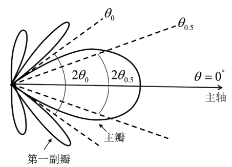 (4) 副瓣寬度。指第一副瓣兩邊兩個零輻射方向之間的夾角;