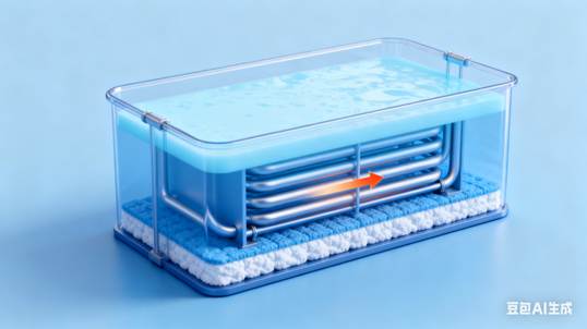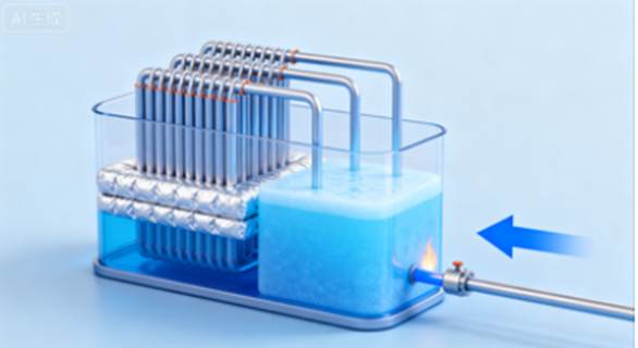 11.104、需要放熱時,液態(tài)石蠟通過換熱管釋放熱量并凝固(液態(tài)→固態(tài)),藍(lán)色箭標(biāo)注熱量輸出方向