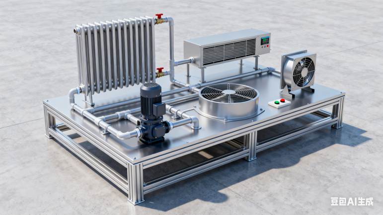 12.1、 裝置采用鋁型材框架底座,臺上安裝有包括鋁塑管、水泵、暖氣片、風(fēng)機盤管、小型風(fēng)機 風(fēng)機開關(guān)