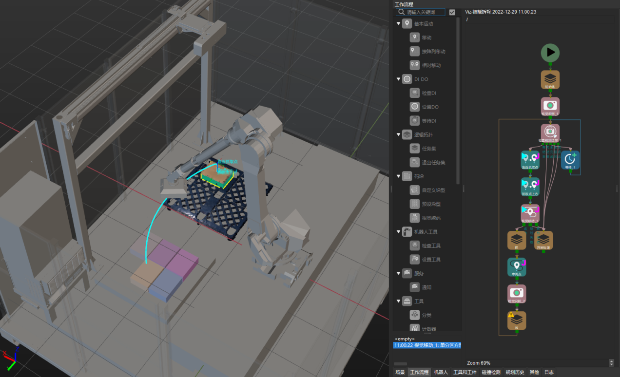 完全圖形化的機器人智能編程環(huán)境,支持數(shù)字孿生。