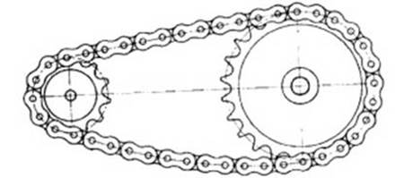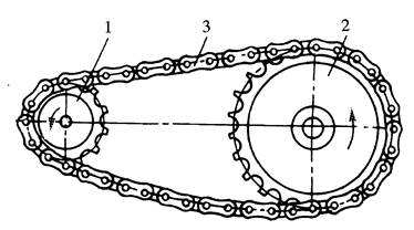 鏈傳動是由裝在平行軸上的主、從動鏈輪和繞在鏈輪上的環(huán)行鏈條所組成,以鏈作中間撓性件,靠鏈與鏈輪輪齒的嚙合來傳遞動力。