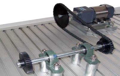 在這個實驗中,將執(zhí)行安裝步驟和校準(zhǔn)鏈傳動系統(tǒng),保證兩傳動軸的平行度。完成搭接和校準(zhǔn)后將在下個實驗中運行電機(jī)。