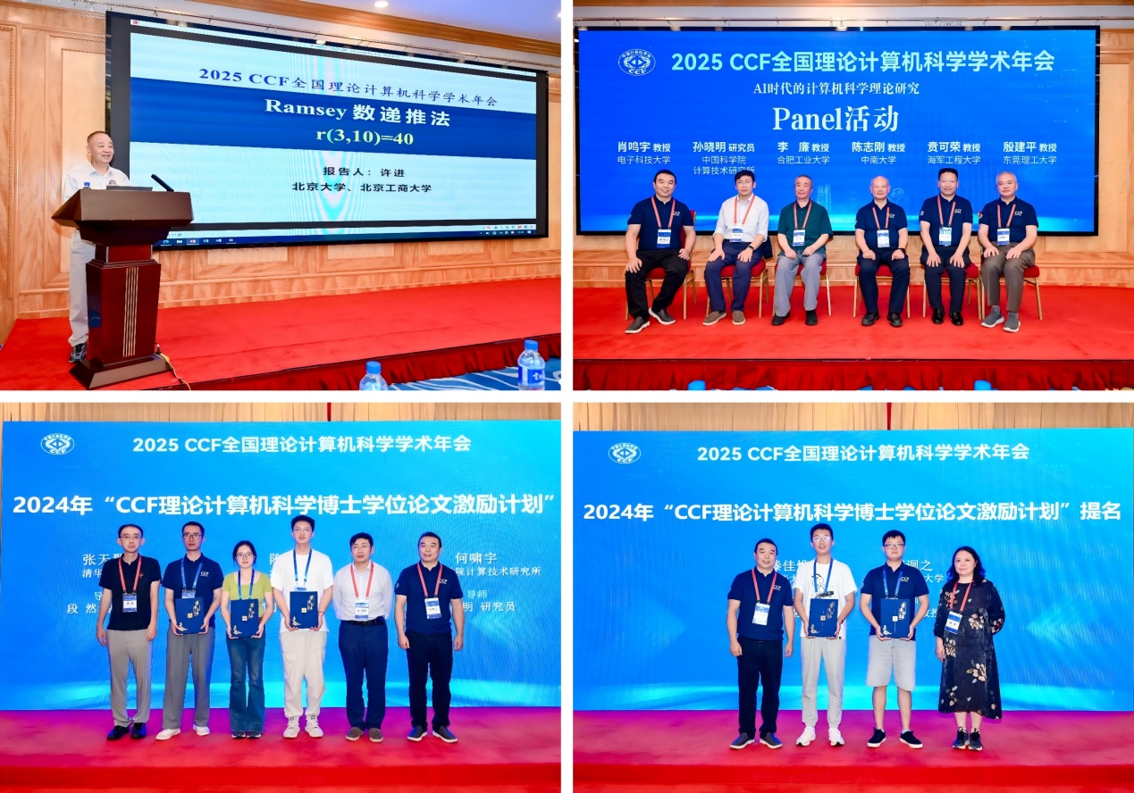 會議設(shè)置了多個特色板塊,推動學(xué)術(shù)與產(chǎn)業(yè)聯(lián)動。在專題報告環(huán)節(jié),北京大學(xué)許進教授作題為《R(3,10)=40》的報告。在博士學(xué)位論文激勵計劃報告會中,5位優(yōu)秀博士生分享了最新創(chuàng)新成果。在Panel活動中,肖鳴宇教授、中國科學(xué)院計算技術(shù)研究所孫曉明研究員、合肥工業(yè)大學(xué)李廉教授、東莞理工大學(xué)殷建平教授、中南大學(xué)陳志剛教授、海軍工程大學(xué)賁可榮教授圍繞“AI時代的理論計算機科學(xué)”展開討論。在CCF-華為胡楊林基金理論計算機專項報告活動中,7位青年學(xué)者展示了各自研究的最新進展和成果。
