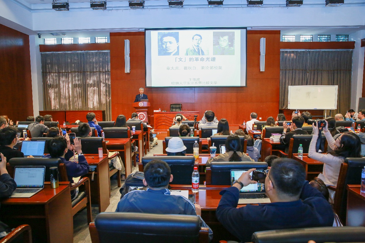 王德威向北京大學(xué)的師生表達(dá)感謝,并以亮明結(jié)論的方式開啟第一講。他從文本性、主體性、能動性三個層面分別呈現(xiàn)出“維新/復(fù)古”“文人/普羅”“行動/書寫”的多重張力,以革命實踐與“文”之自覺的深層互動為線索,串聯(lián)起章太炎、魯迅、瞿秋白與郭松棻四位研究對象。